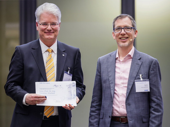In his laudatory address, ITG Chair Jörg-Peter Elbers emphasized Christian Wietfeld’s internationally acknowledged contributions to successive generations of mobile network technologies—from 3G and 5G to current developments in 6G. Over more than three decades in academia and industry, Wietfeld’s research has focused on wireless connectivity for complex and safety-critical systems, including transportation and logistics infrastructures, energy networks, and emergency response systems. The award further acknowledges his strong commitment to translating research findings into practical, deployable technologies, whether through standards development, technology transfer via spin-offs, or his long-standing leadership of the VDE/ITG Technical Committee on “Communication Networks and Systems.”. His teaching is also characterized by the way he uses current real-world examples to illustrate how scientific knowledge is applied in business and society.