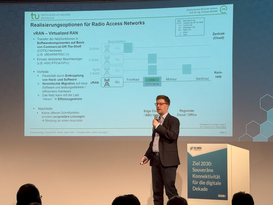 In addition, Dr.-Ing. Fabian Kurtz from CNI provided an overview of Radio Access Network architectures including Open RAN. The trend towards software-driven mobile communication and open interfaces as those defined by the GSMA Open Gateway initiative enable networks to flexibly adapt to application needs.