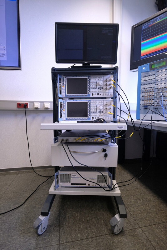The Multi-Technology Networking Lab provides extensive capabilities for radio network emulation, reproducible measurements, as well as an operator- and manufacturer-independent evaluation. Complex radio environments, motivated by our application-oriented research topics, are reproduced in versatile lab settings (Software/Hardware-in-the-loop, channel emulation, etc.), e.g., in preparation for extensive field tests.